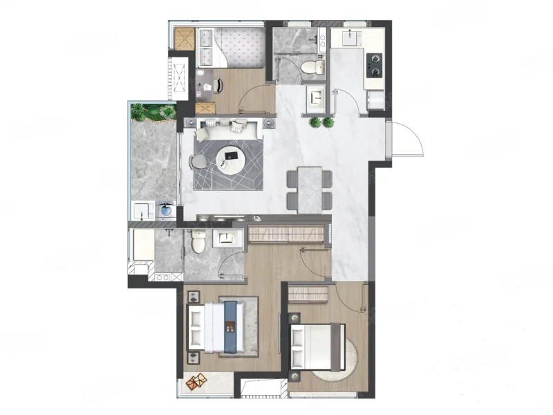 2 室 2 厅 1 卫