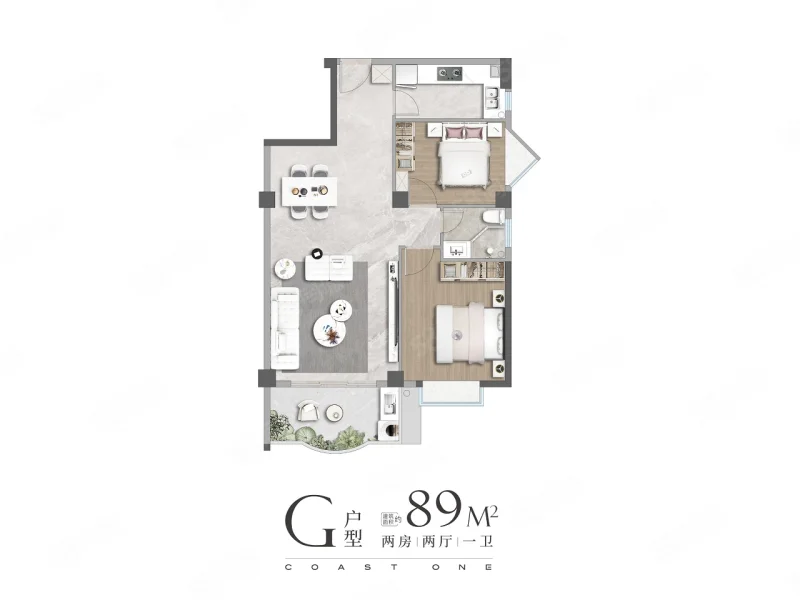 2 室 2 厅 1 卫
