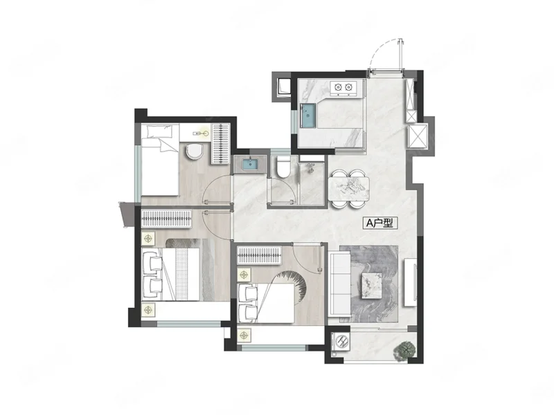 2 室 2 厅 2 卫